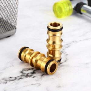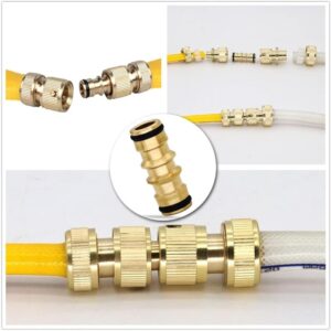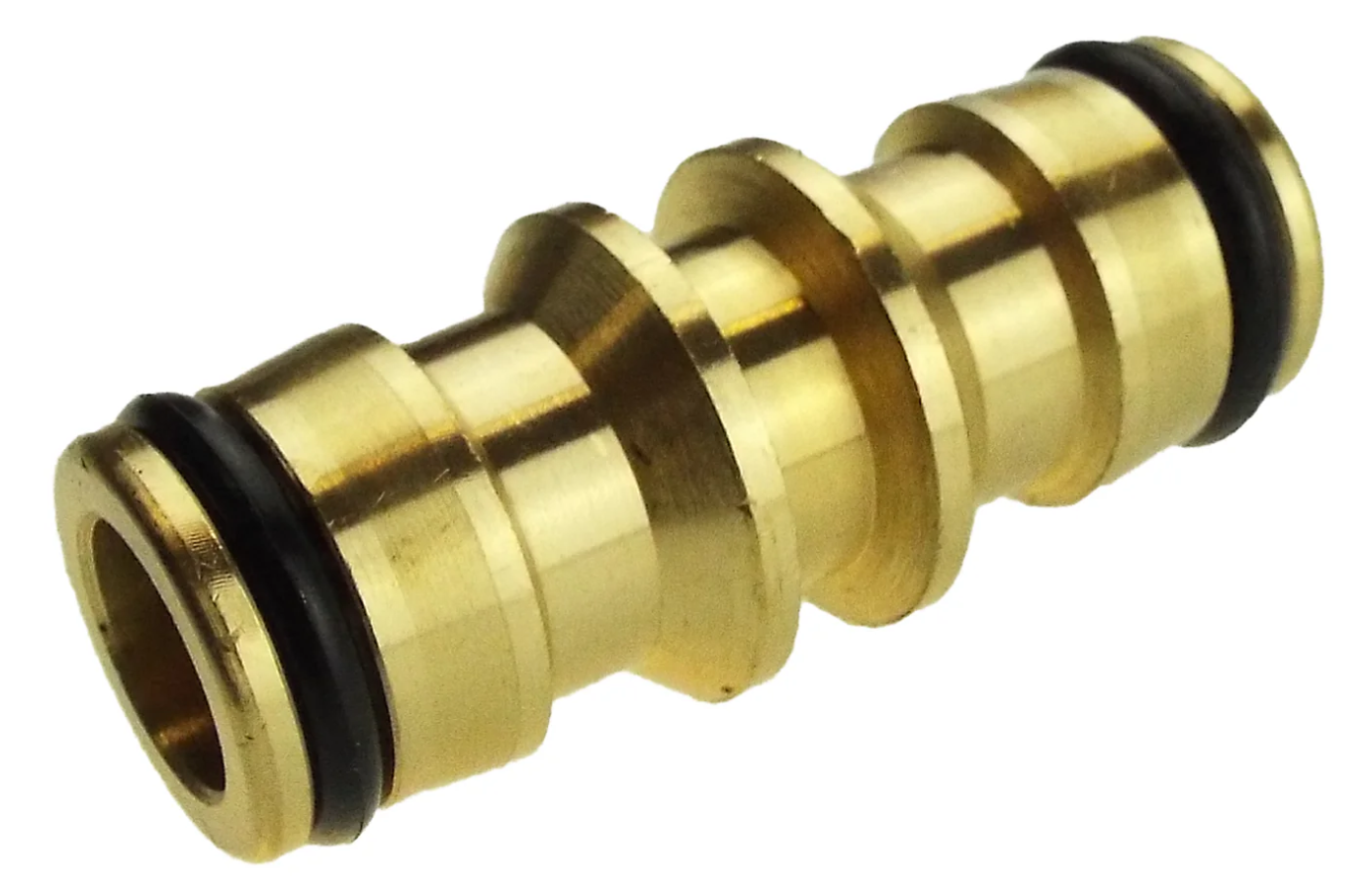 Made from solid brass, the connector is built for outdoor use and frequent connecting and disconnecting. The male-to-male layout is intended to link two hose ends that already have female quick connectors fitted, creating a neat, reliable join.