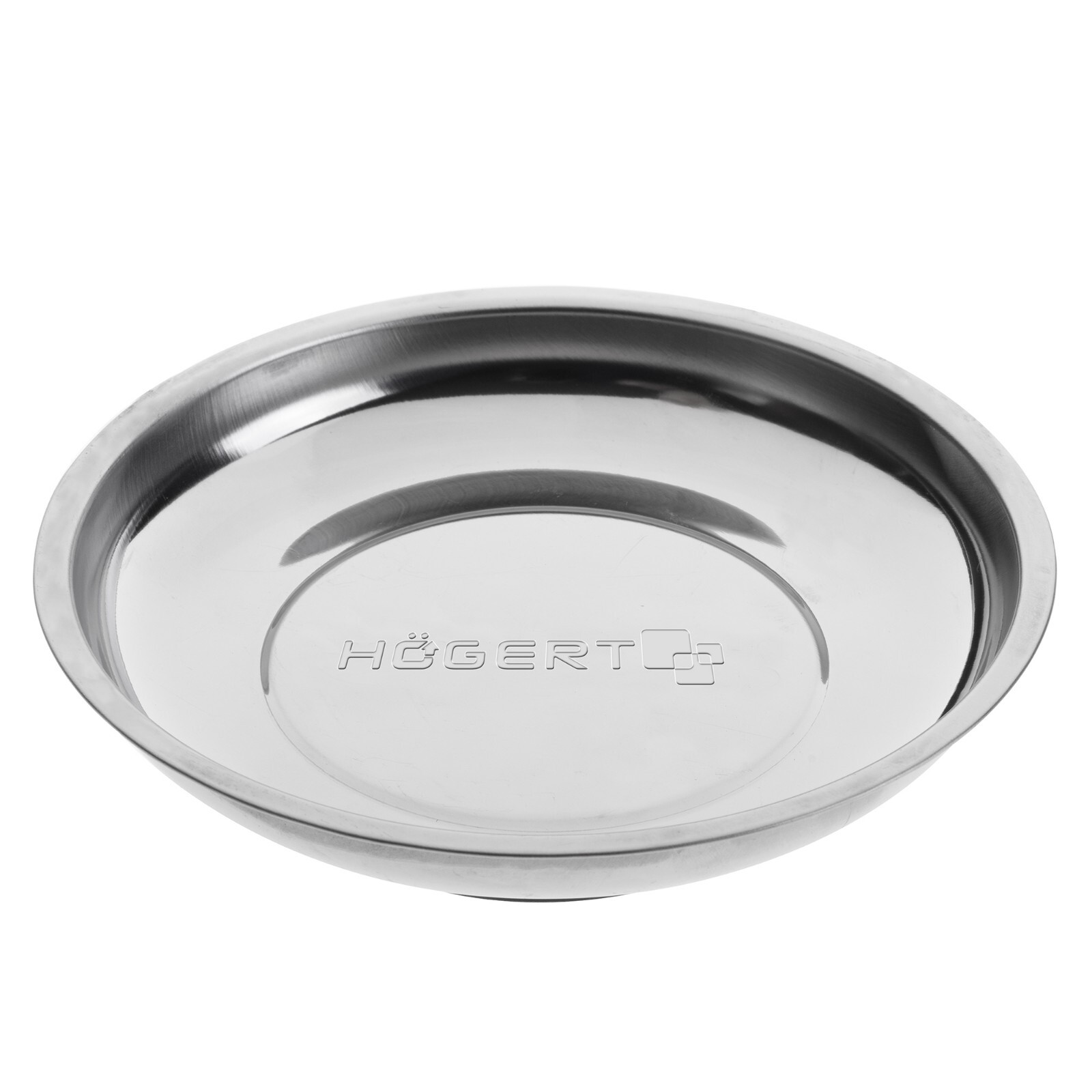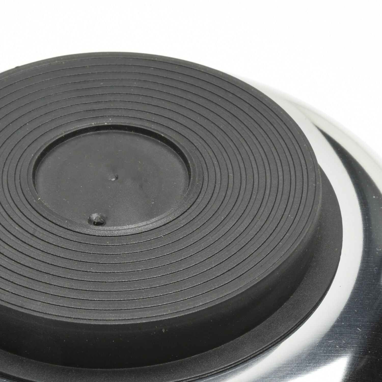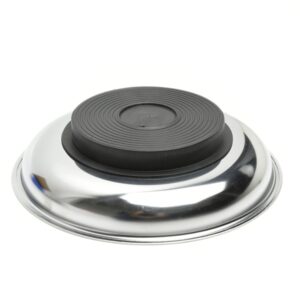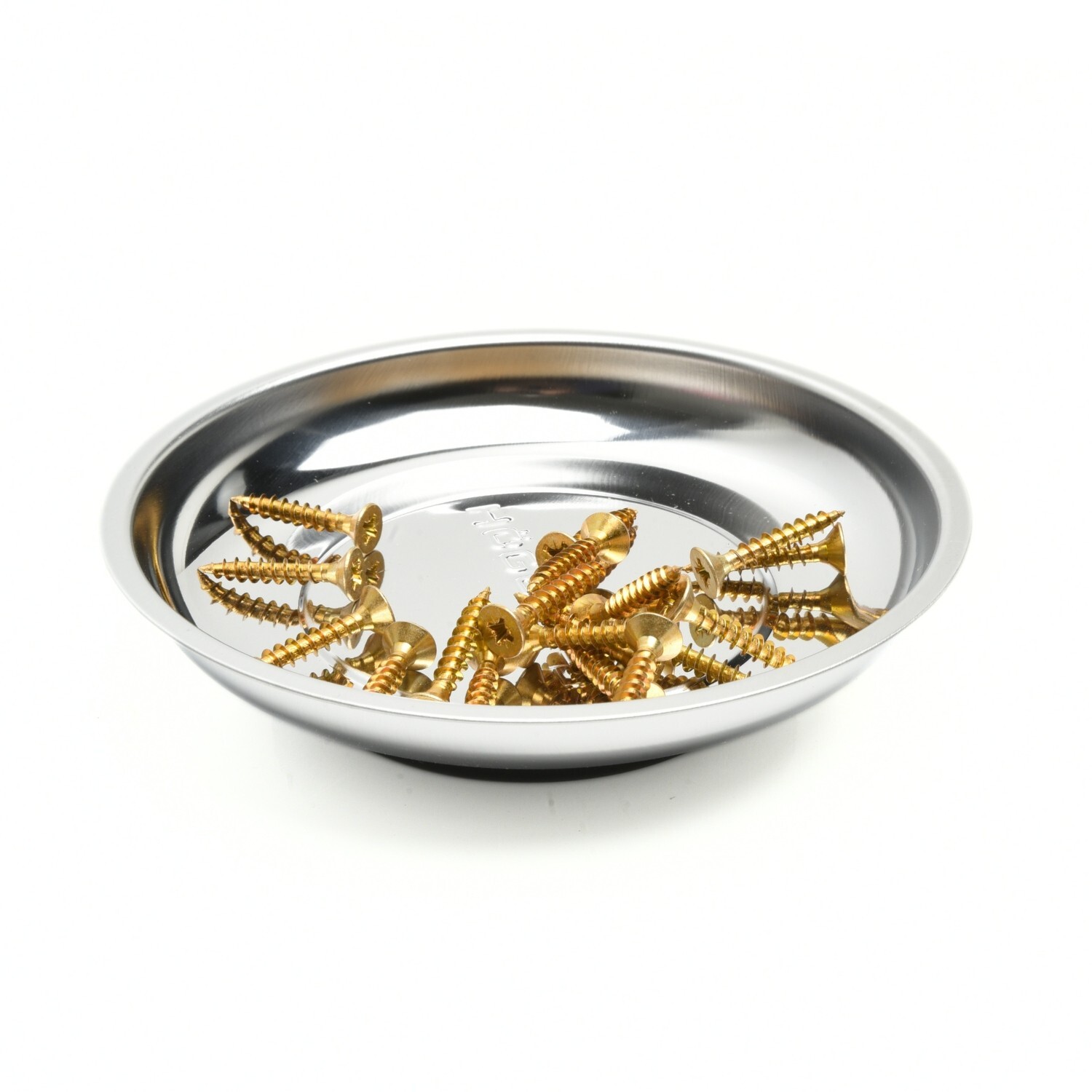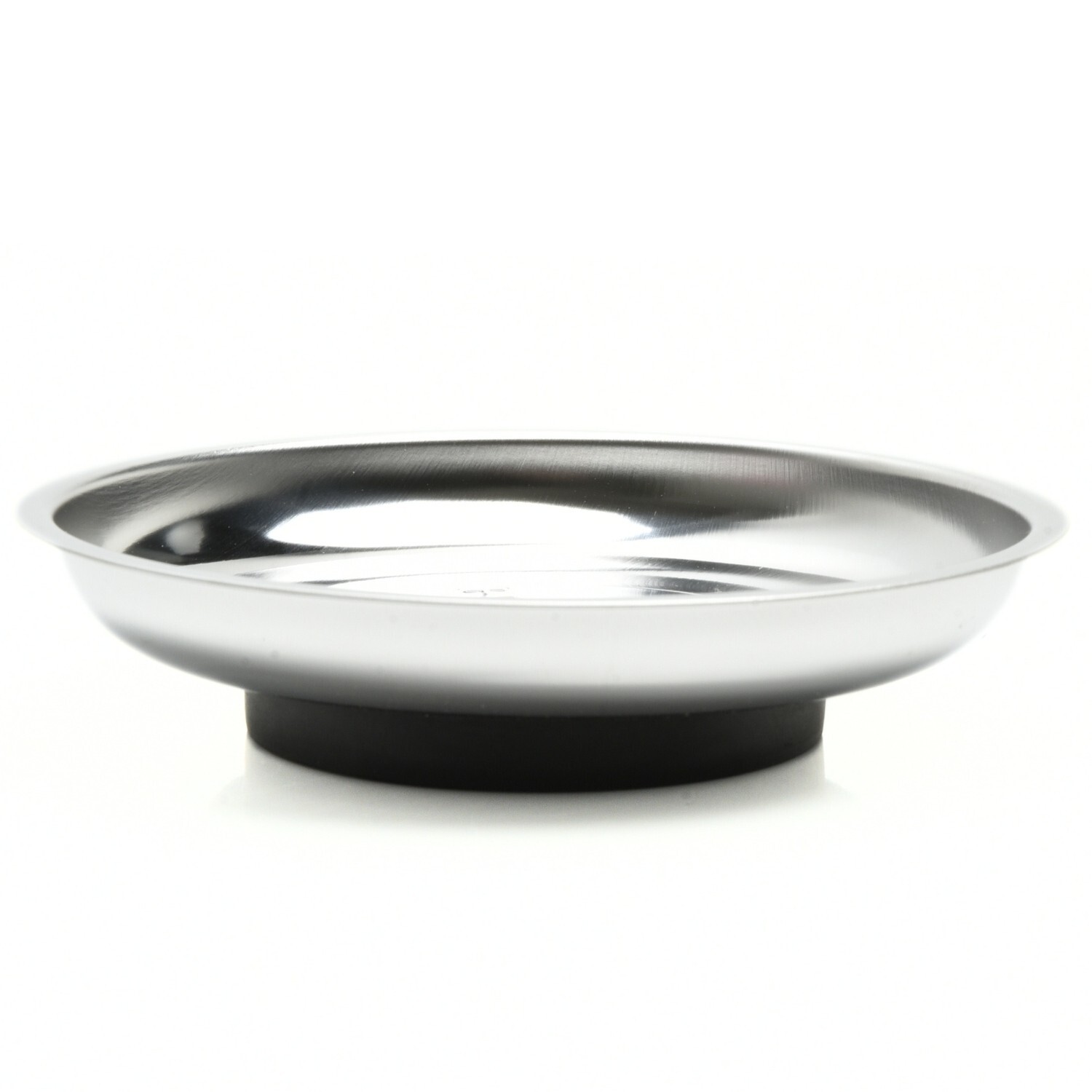 Made from durable stainless steel, the tray is fitted with a strong integrated magnet to hold parts securely, even when you move around the workspace. A non-slip rubber base helps it stay stable and also protects worktops, toolboxes and painted surfaces from marks.