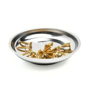 Keep screws, nuts and small metal parts in one secure place while you work. This stainless steel magnetic tray stays put on toolboxes and benches, with a rubber base to help prevent slipping and protect surfaces.