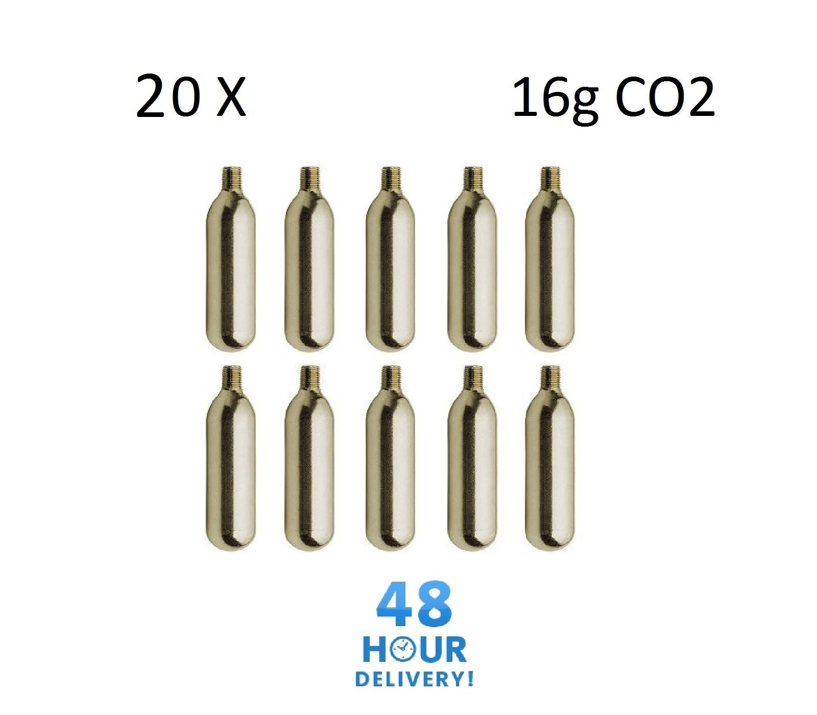 Pack of 20 threaded 16g CO2 cartridges for rapid tyre inflation on the go. Ideal for CO2 inflator heads used with bikes and other compatible cartridge pumps, giving quick, clean bursts of gas when you need them most.