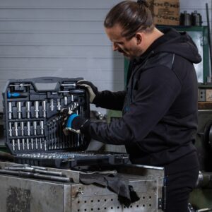 This 222-piece socket, bit and accessory set is designed to cover everyday workshop jobs as well as demanding mechanical tasks. With three drive sizes included, it’s ideal for tackling a wide range of fixings while keeping everything organised and close to hand.