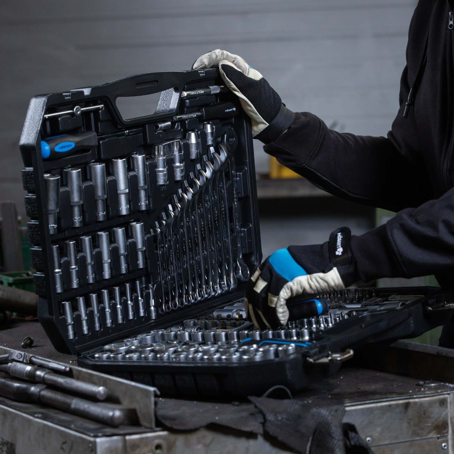 The kit is supplied in a reinforced carry case with sturdy metal hinges and latches, helping to protect your tools during storage and transport. A broad assortment of extensions, universal joints and bit holders helps you reach awkward fasteners and adapt to different jobs.