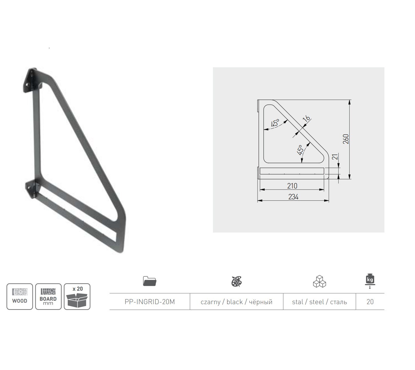 | Bracket Size | 26 x 23 cm |