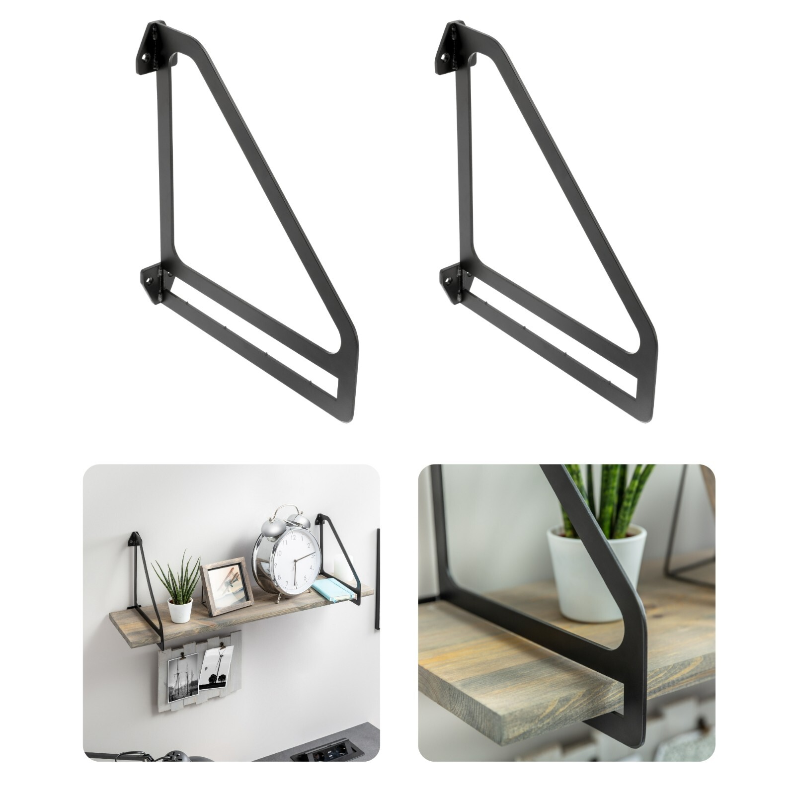 Made from durable steel with a matt black finish, these brackets suit modern, Scandinavian and industrial interiors. The triangular design helps distribute weight evenly for dependable support.