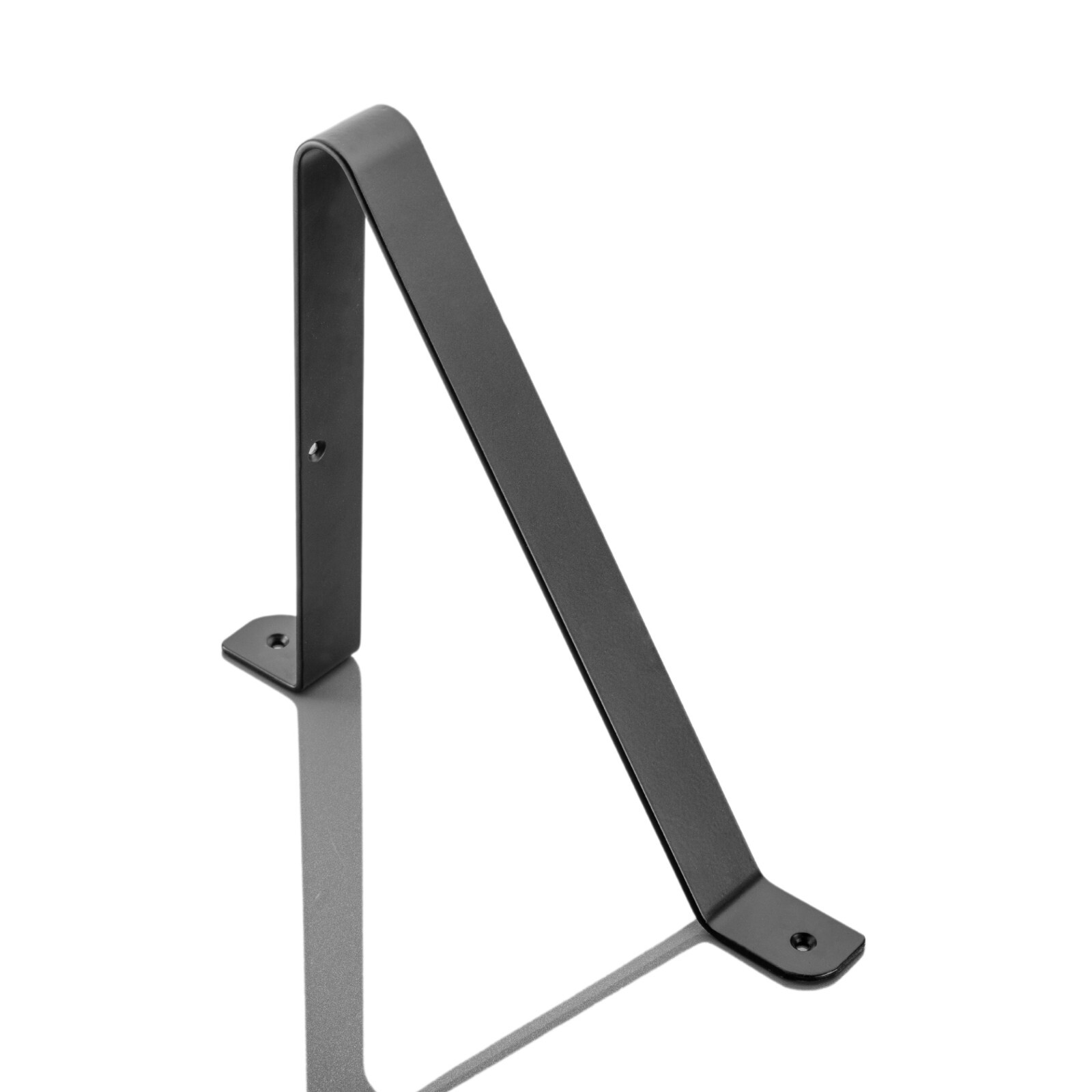 A pair of matt black steel shelf support brackets for creating sturdy, stylish wall-mounted shelving. The modern industrial look suits a wide range of interiors while providing reliable support. Brackets only; fixings are not included.