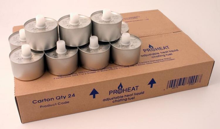 Each tin uses a wick to deliver a consistent burn and is made to be low-odour during use, helping keep serving areas more pleasant. The cans are designed to remain cool to the touch even after extended use for easier handling during service.