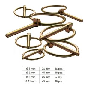 This 50-piece lynch pin set is a practical choice for securing pins, axles and hitch points on trailers, agricultural equipment and general machinery. With multiple common sizes in one kit, it helps you stay prepared for routine maintenance, repairs and quick replacements.