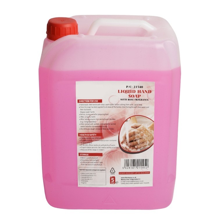 Rose-scented liquid hand soap refill in a handy 5L bottle for everyday handwashing. Helps lift dirt while leaving hands feeling soft and fresh. Ideal for topping up smaller dispensers at home or in busy workplaces.