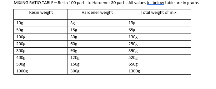 100:30 (resin:hardener)