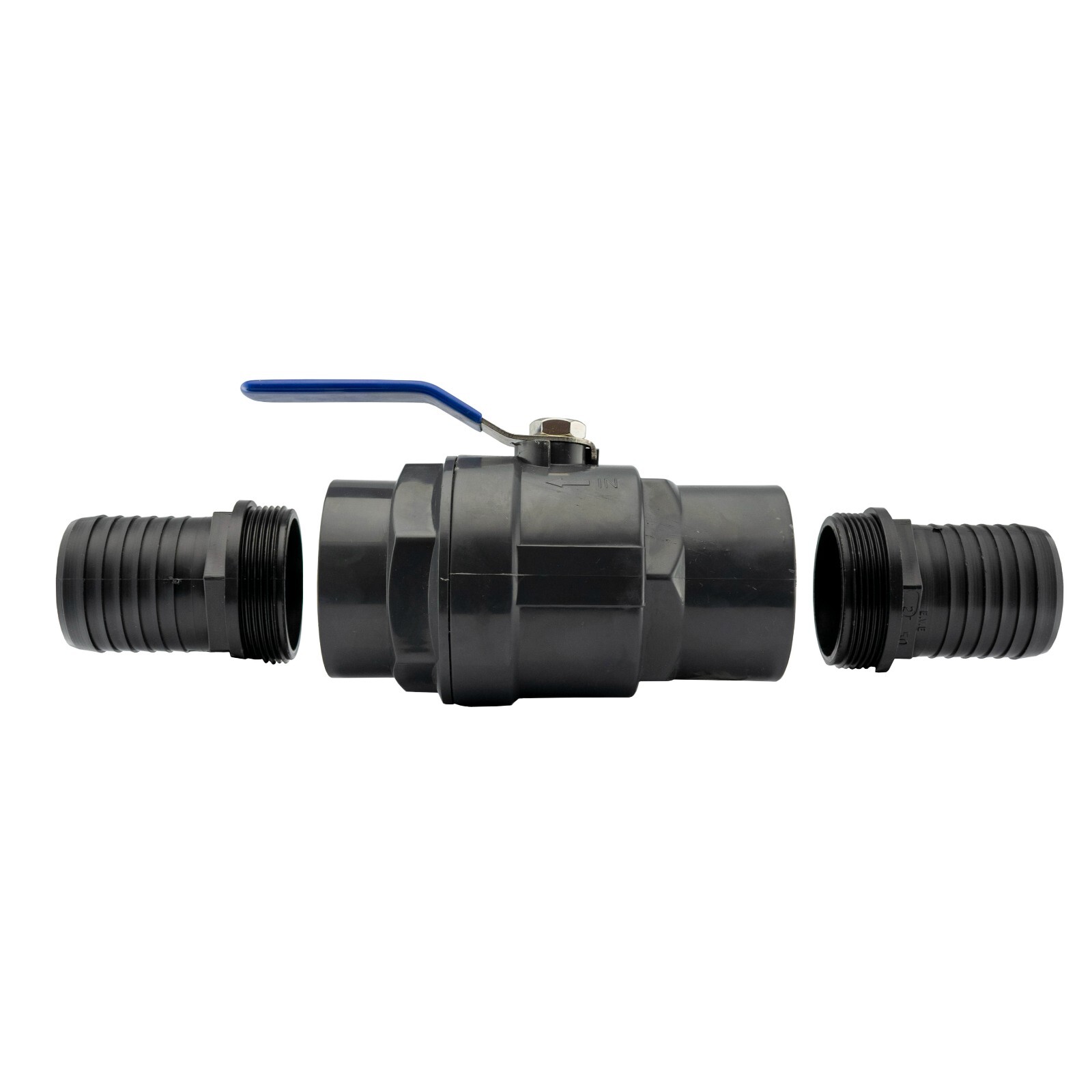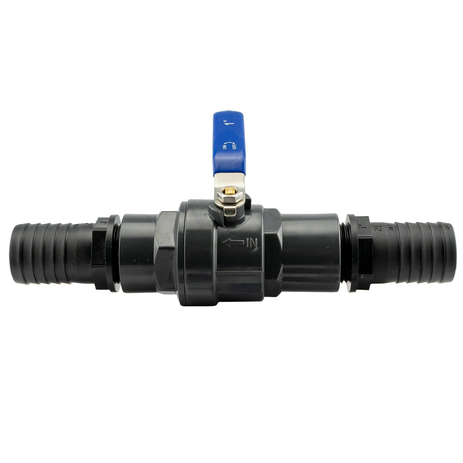 Control water flow with precision in pond and irrigation systems. This adjustable valve features a stainless steel ball valve and handle for reliable, leak-resistant performance. Supplied with two hosetails for a quick, secure hose connection.