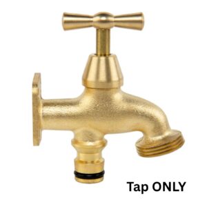 A robust brass bib tap that gives you an instant water point anywhere outdoors using a standard quick-connect inlet. The 90° ball valve offers smooth on/off control and the 3/4″ BSP male outlet suits common garden hose fittings.