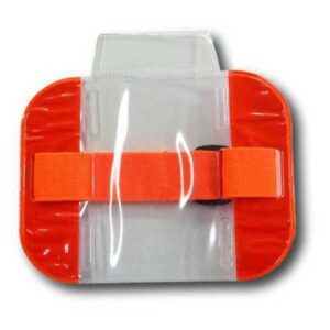 High visibility SIA armband badge holder designed to display your ID clearly while you work. The adjustable elastic strap fits comfortably on the upper arm, and the clear pocket helps keep your card clean and protected. Ideal for security staff and event teams.