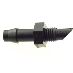 Made from UV-stabilised plastic for outdoor durability, the barbed end is intended to grip firmly inside micro tubing to reduce the risk of leaks. The threaded end allows you to connect into compatible fittings within a micro irrigation system.
