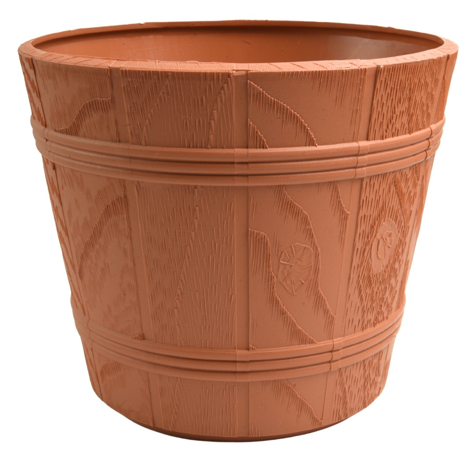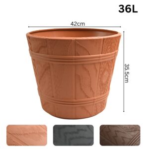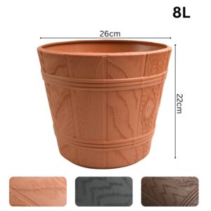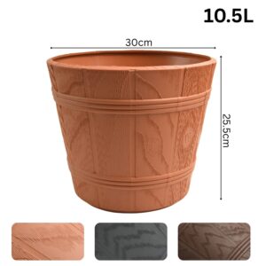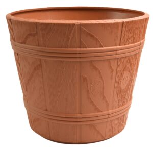 Barrel Planter Wood Effect Round Plastic Pot
