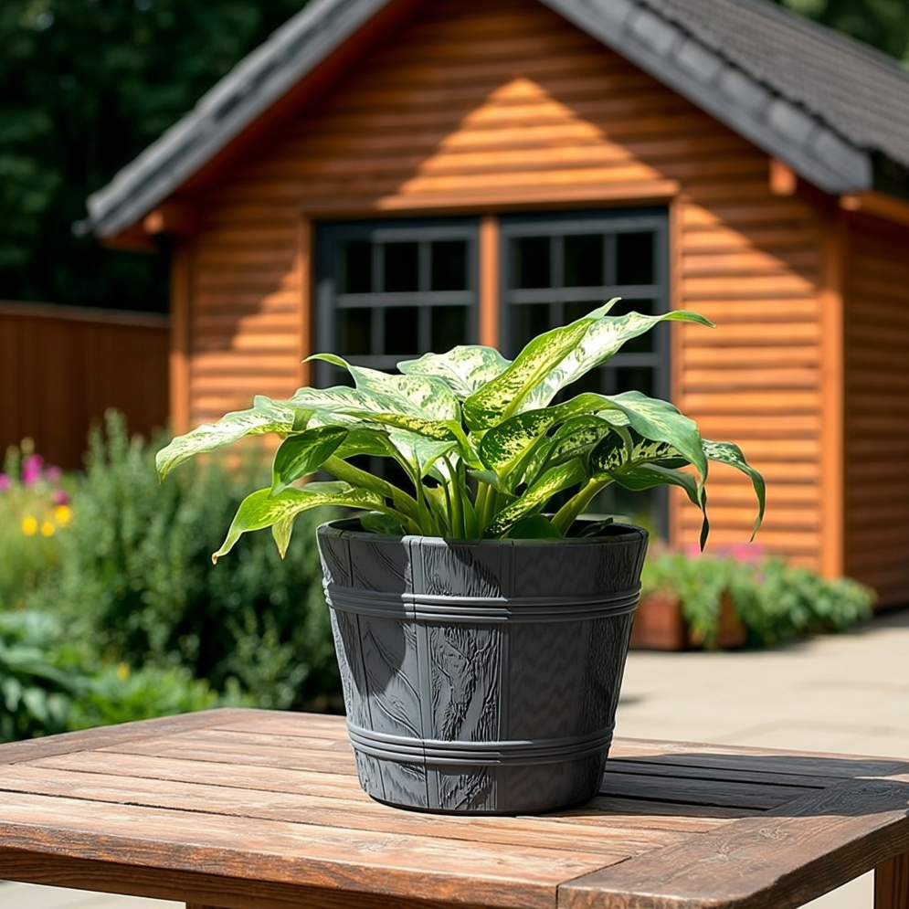 Bring a rustic barrel look to your home or garden without the upkeep of real wood. These lightweight, durable plastic planters have a realistic wood-effect finish and are designed for year-round indoor or outdoor use.