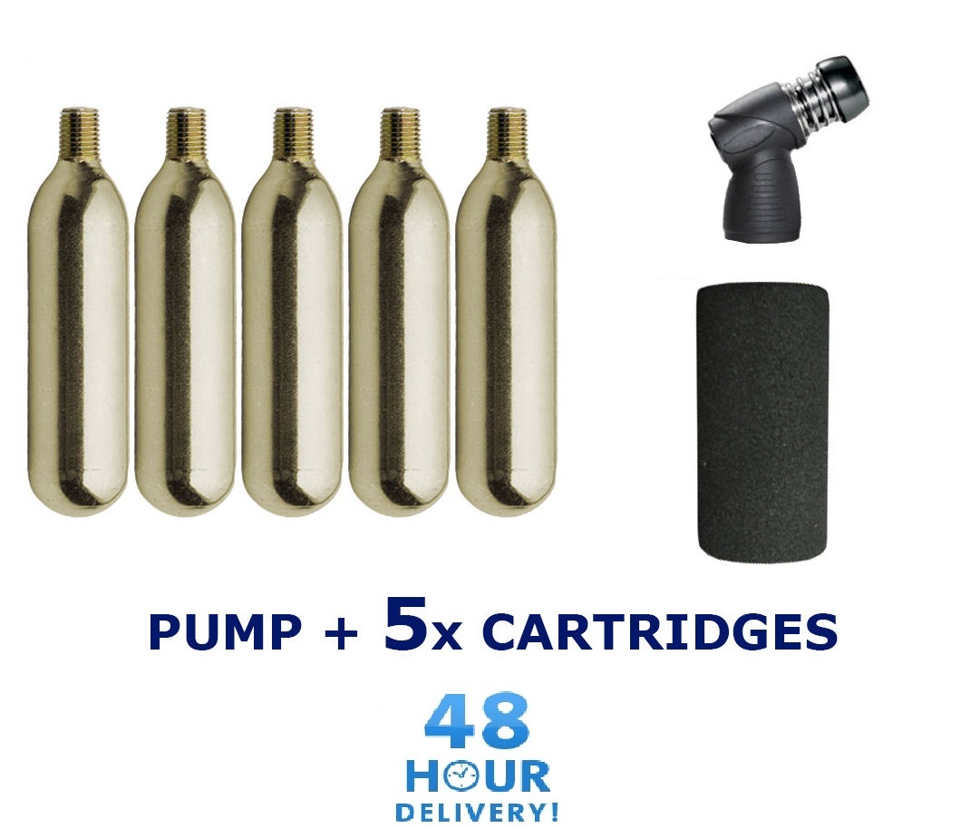 CO2 inflator, foam sleeve, cartridge holder, 5 x 16g CO2 cartridges