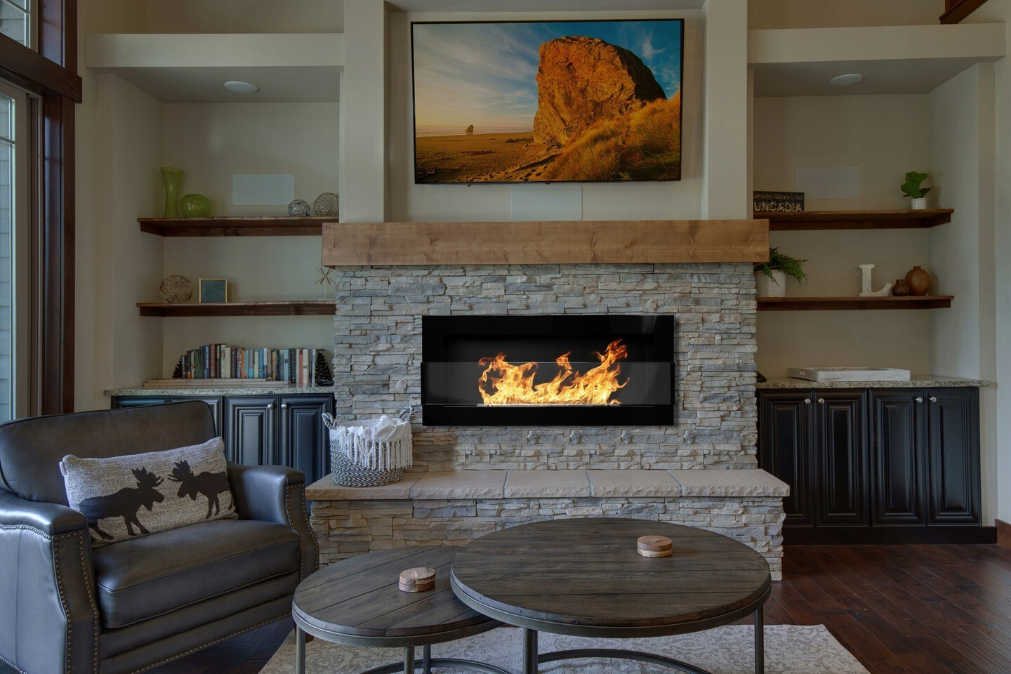Suitable for use with high-strength liquid bioethanol fuel, this ventless fireplace offers a clean-burning focal point for living rooms, dining areas, offices, reception spaces and similar settings. Decorative stones and a funnel are included to help with presentation and refuelling.