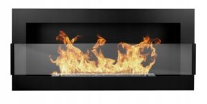 Bioethanol Wall Fireplace Matt Black with Glass 900×400