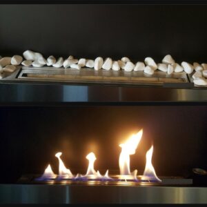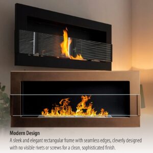 Create a real flame feature without a chimney using this modern bioethanol wall fireplace. The ventless design burns clean bioethanol fuel, while the glass safety screen and adjustable flame give comfortable ambience for homes or workspaces.