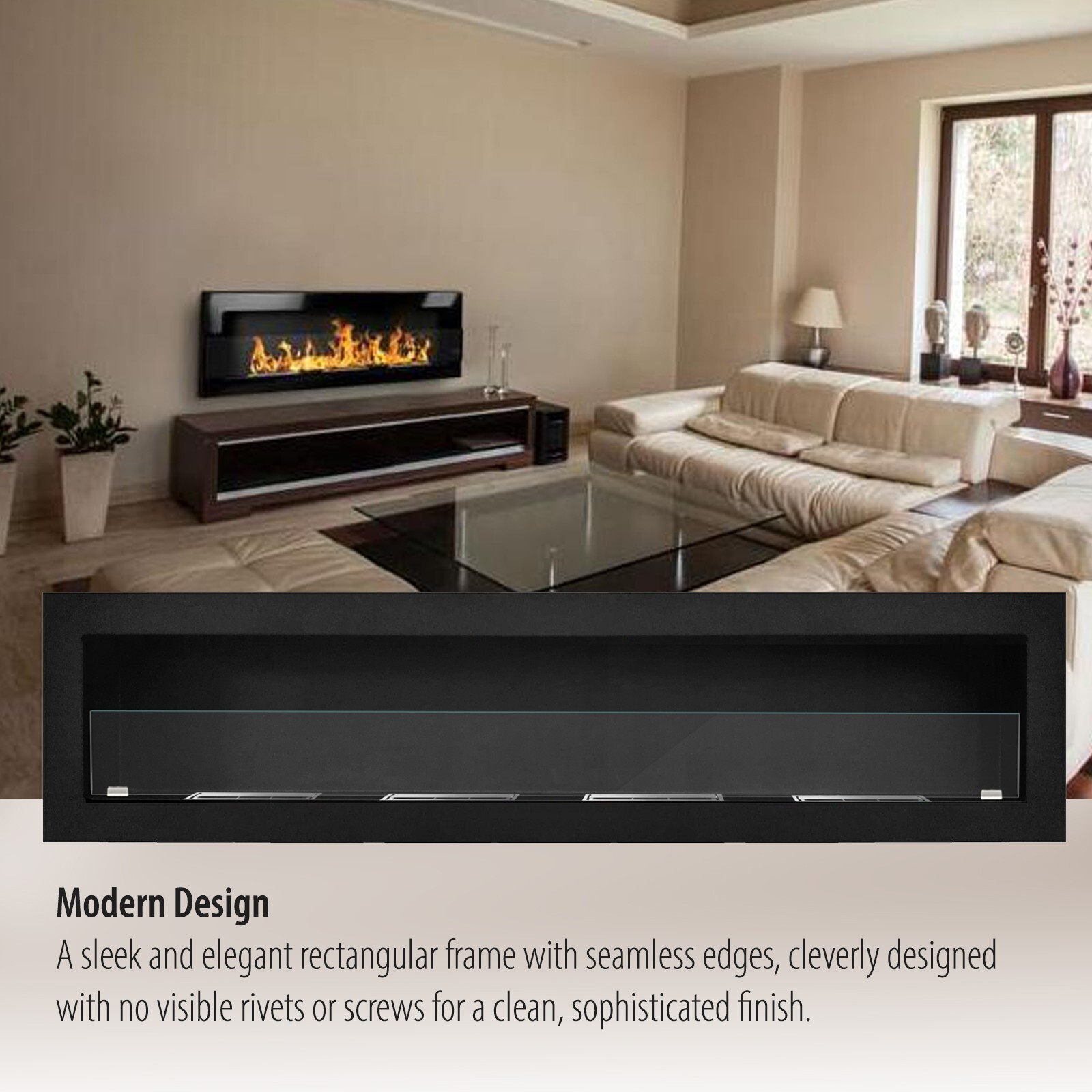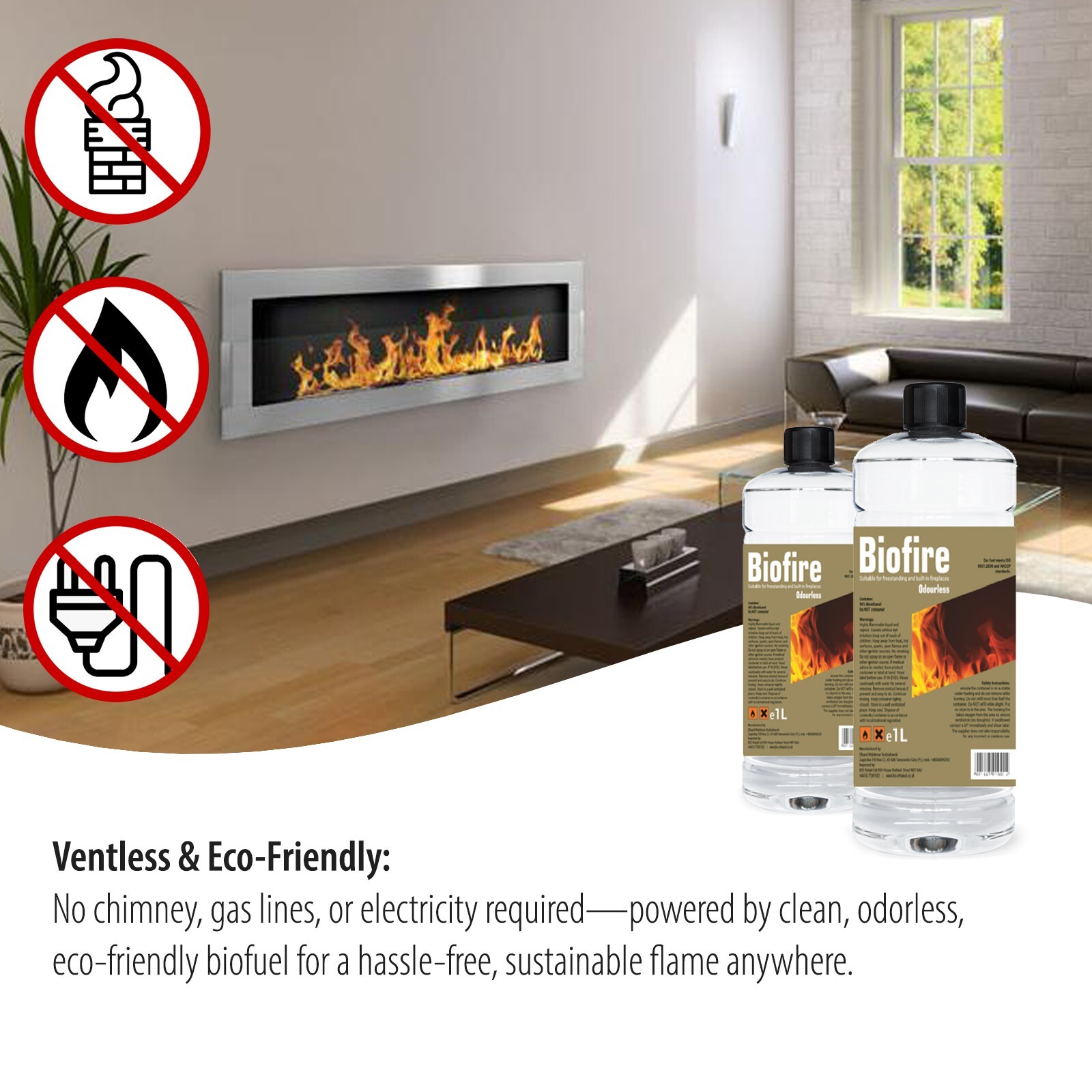Ideal for living rooms, dining areas, home offices and feature walls, it offers a clean-burning alternative to traditional fires when used with certified bioethanol fuel. It can be installed as a hanging unit and is also suitable for plasterboard constructions when fitted correctly.