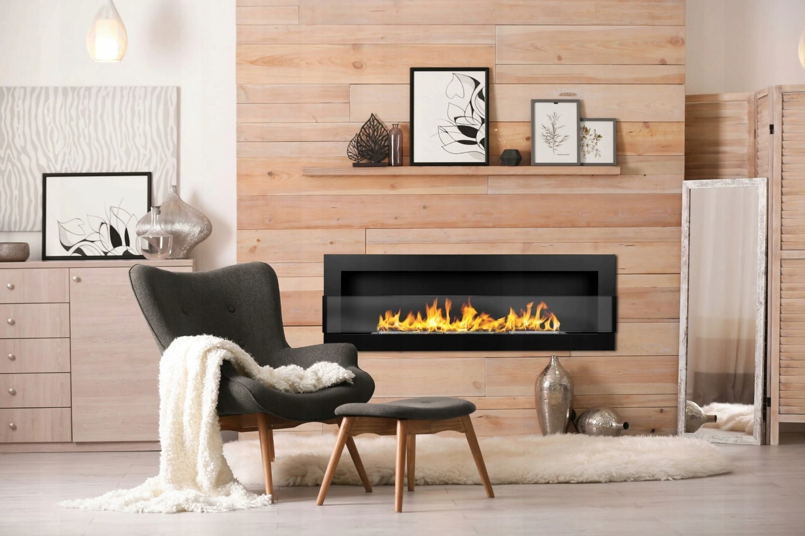 | Included | Wall mounting kit, glass panel, damper tool, decorative stones, funnel, 4 L eco ethanol |