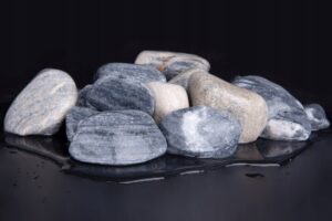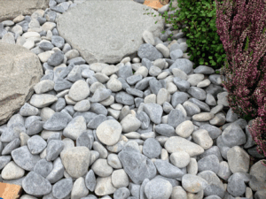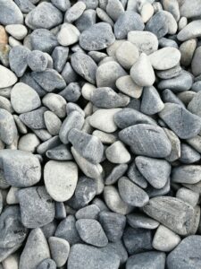 Decorative Blue Akron marble pebbles for garden borders, pots and water features. The stones show a richer blue tone when wet and a softer blue-grey when dry. Ideal for adding contrast and texture to landscaping schemes.