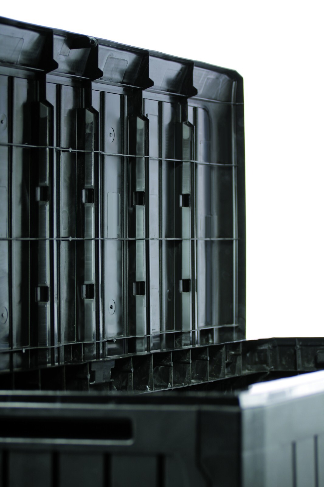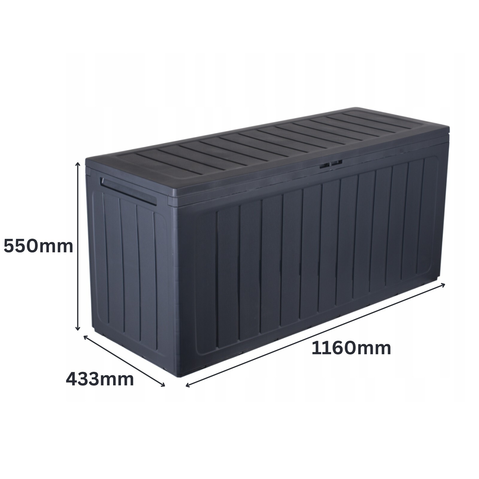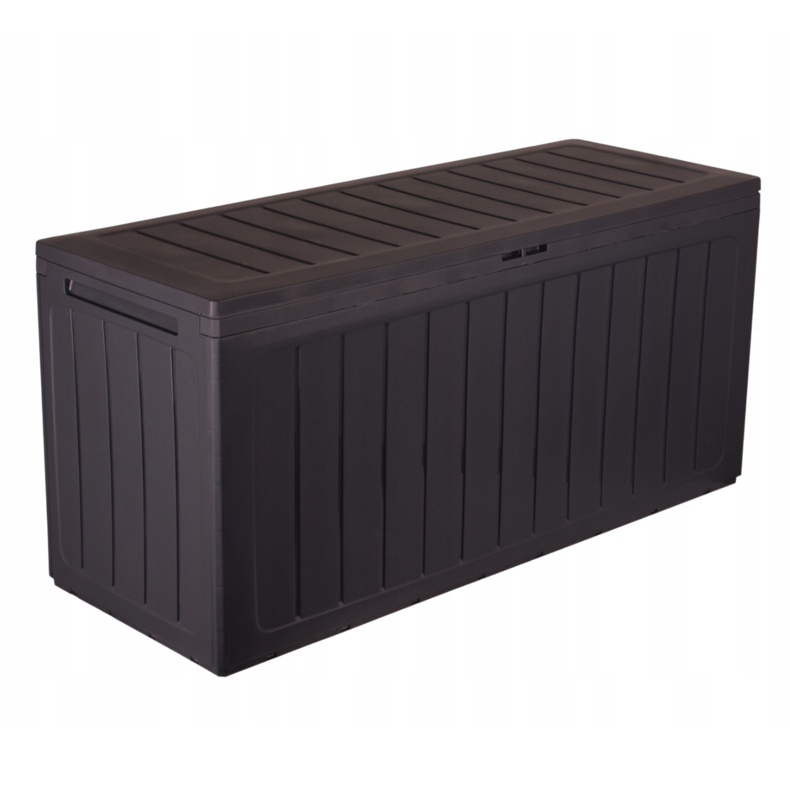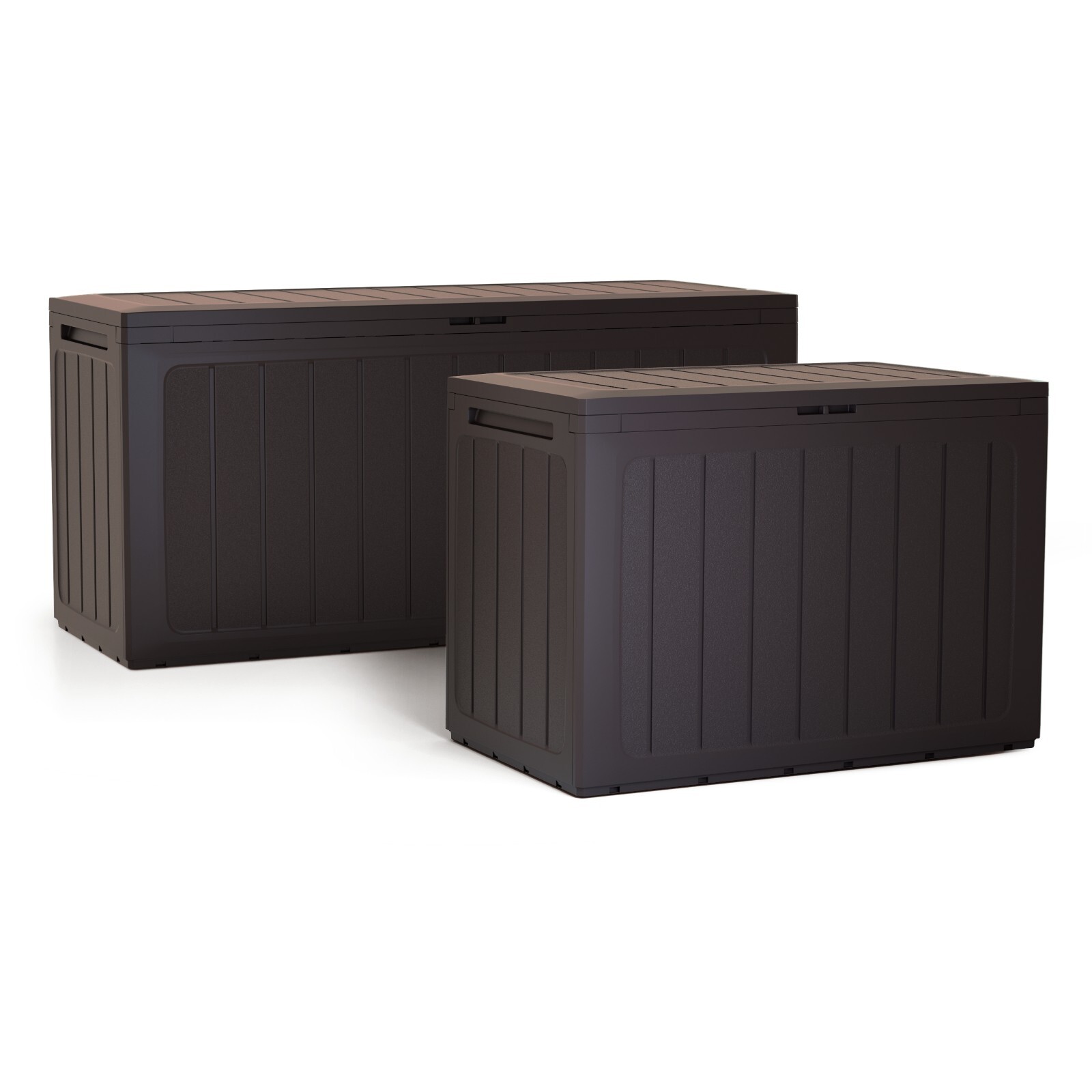 Made from durable plastic with a contemporary vertical slats finish, this storage box is built for regular outdoor use. The lidded design helps keep stored items protected from the elements, making it a dependable choice for changeable weather.