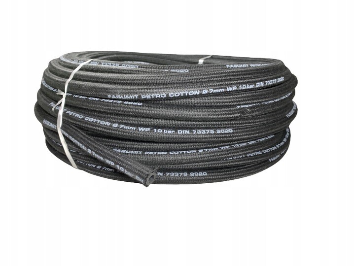 Flexible braided fuel hose for transferring petrol, diesel and oil, and for breather or vacuum lines. NBR rubber construction helps resist fuels and oils, while the textile braid adds durability and helps reduce kinking. Choose the required internal diameter and cut length.