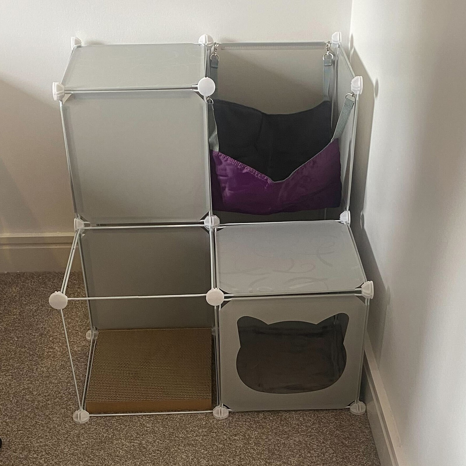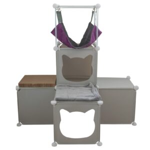 Create a fun, modular play space where cats can climb, hide and relax. The wipe-clean cube system includes a scratcher and cosy blanket, with a hammock included in larger kits for extra lounging comfort.