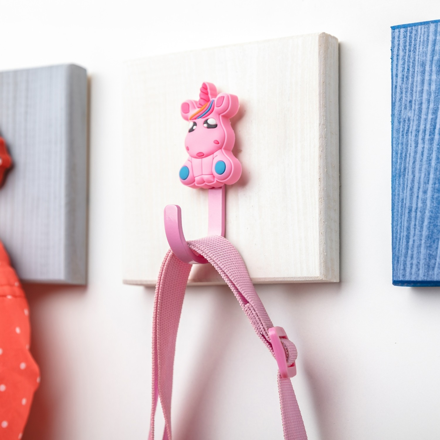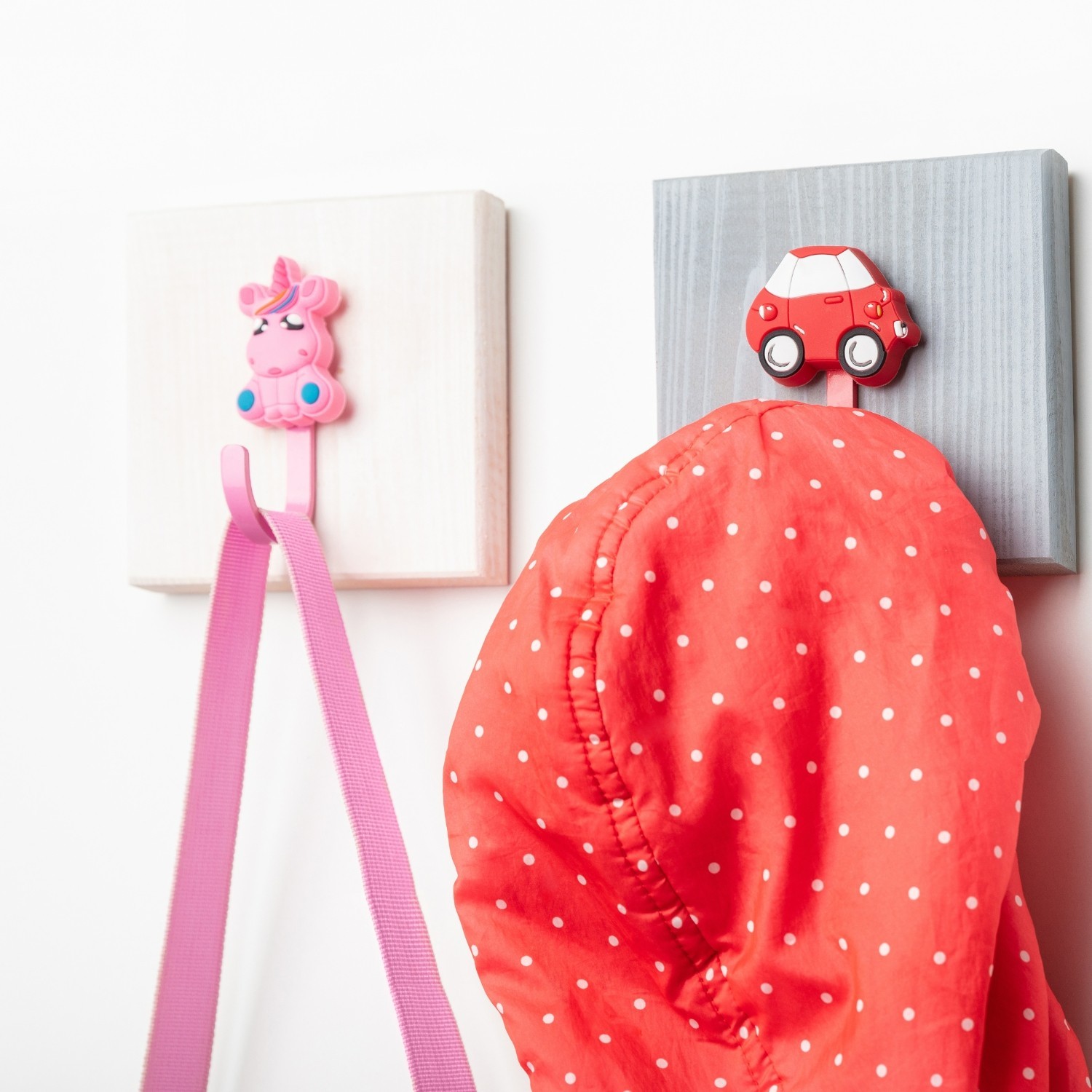 Each hook is made with a sturdy build and smooth, child-friendly edges for everyday use. The design-led front adds character to the room while the wall-mounted format keeps storage simple and within easy reach.