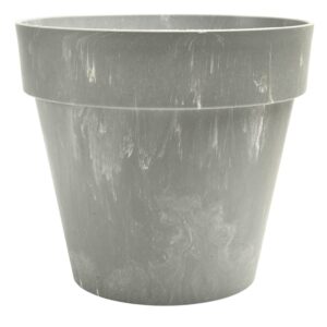 A lightweight round plant pot with a realistic concrete-effect finish, ideal for styling houseplants or outdoor displays. Weather-resistant plastic gives the look of concrete without the weight, making it easy to move and position.