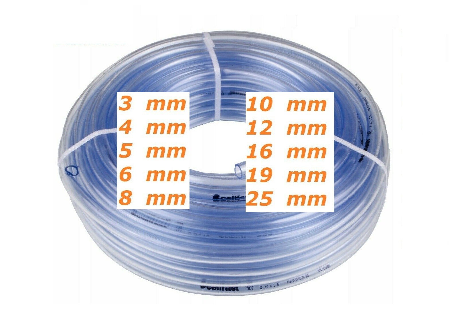 Clear, flexible PVC tubing for low-pressure transfer of water, air and other suitable liquids. Food-grade material makes it ideal for home brewing and aquarium/pond use. Choose the required internal diameter and length to suit your setup.