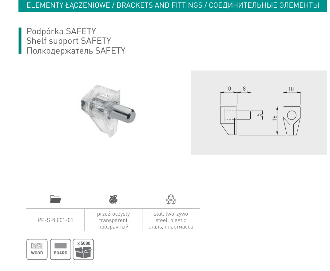 Clear 5mm shelf support studs designed to hold wooden shelves securely with a neat, unobtrusive finish. The press-fit design makes installation quick and helps keep shelving stable in kitchen cabinets and furniture.