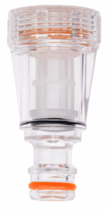 Designed to sit between a 3/4″ threaded water outlet and your hose setup, it provides a straightforward connection for common garden and outdoor water applications. The transparent body makes it easy to see when the filter needs checking and cleaning.
