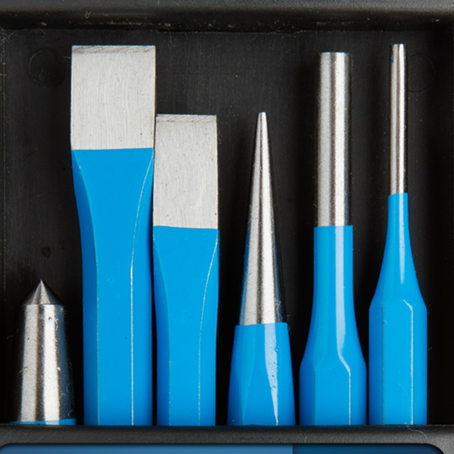 A versatile 6-piece cold chisel and punch set for cutting, marking and breaking hard materials with confidence. Forged from chromium-vanadium steel for strength and edge retention, and supplied in a handy storage case for easy transport.