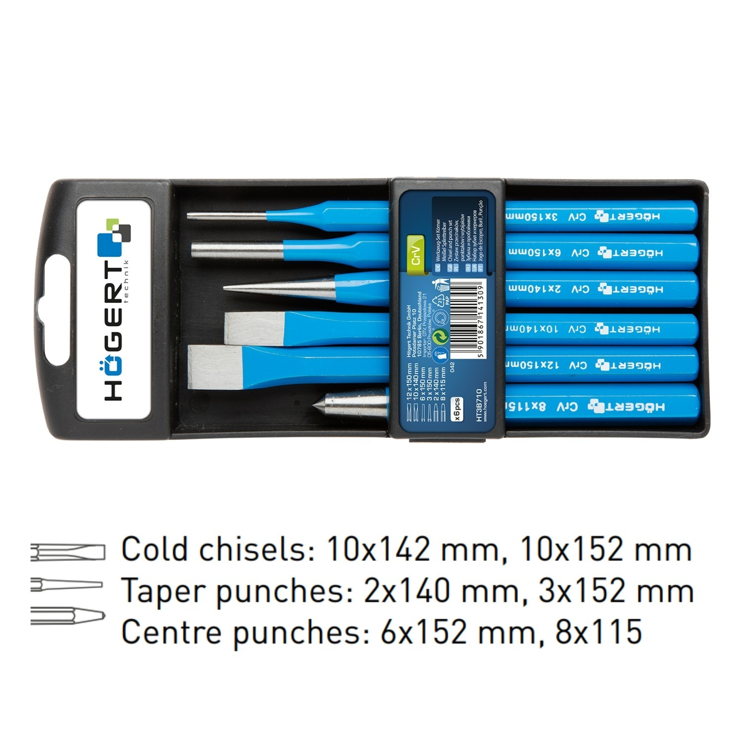 Ideal for metalworking, general fabrication and maintenance tasks, the set supports accurate marking before drilling, driving and aligning during assembly, and controlled chiselling for shaping or removing material.