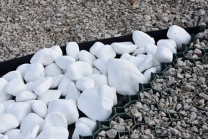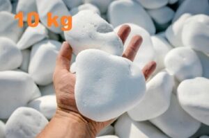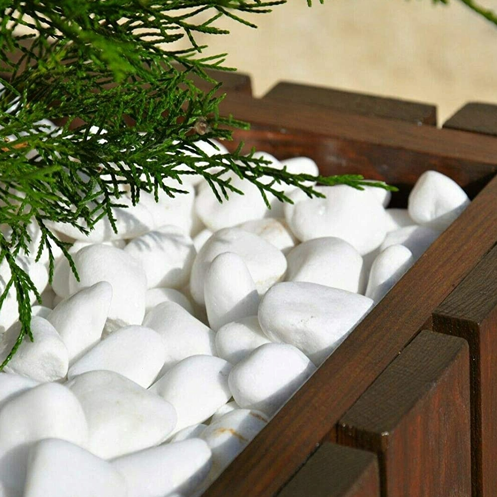 Premium white marble pebbles to brighten borders, pots and landscaping with a clean, modern finish. Ideal for decorative ground cover around plants and features, with natural variation in shape and shade from batch to batch.