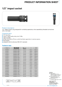 Suitable for use with 1/2in drive impact wrenches and ratchets, it’s a practical choice for vehicle maintenance, machinery servicing and general workshop tasks. Choose the required size variant to match your fastener.