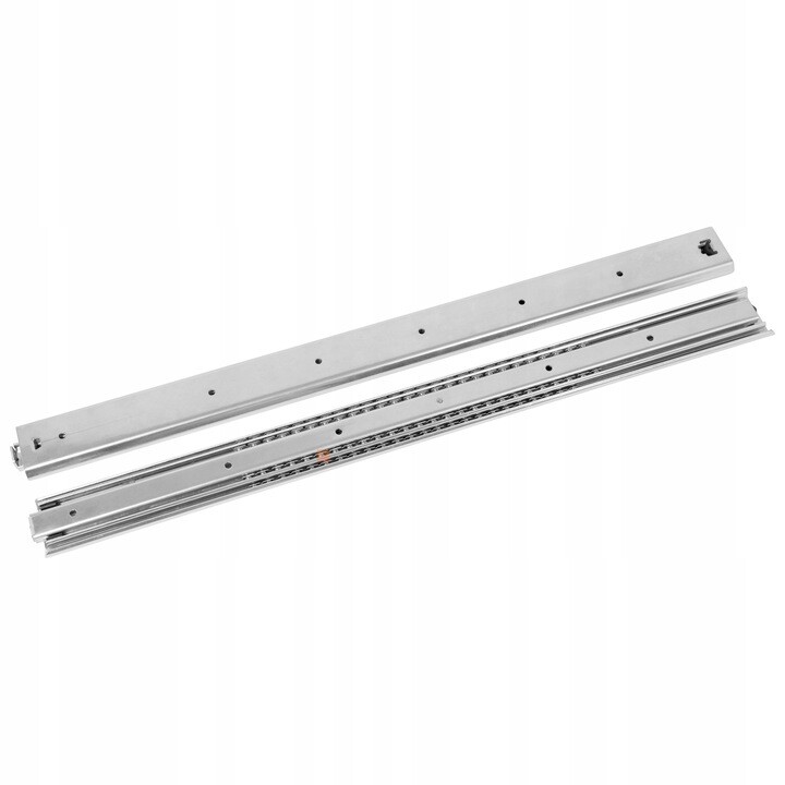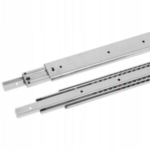 Heavy duty full-extension drawer runners for smooth, stable sliding in furniture drawers. Ball bearing construction supports loads up to 100kg and allows the drawer to extend fully for easy access. Supplied as a left and right runner pair.