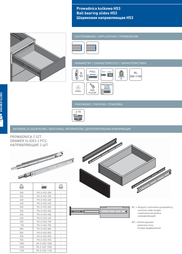 Drawer Runners 53mm Heavy Duty Full Extension 100kg