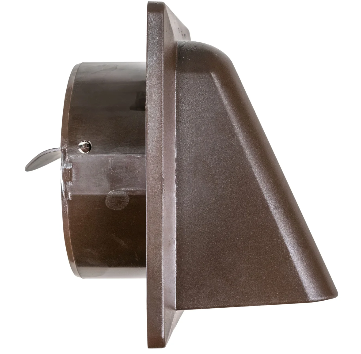 Made from durable ABS plastic, it is designed for outdoor use where weather exposure is expected. The hooded cowl and louvre-style face help deflect water, while the integrated gravity flap (backdraught damper) closes when airflow stops to help limit unwanted draughts and odours returning through the duct.
