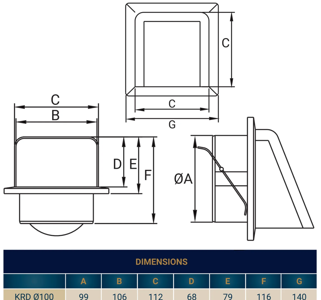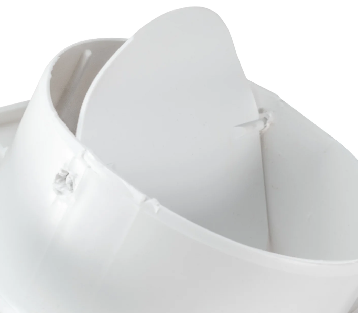 Made from durable ABS plastic, it’s built for reliable use indoors or outdoors. The hooded louvre face helps deflect rain and leaves, while the built-in gravity flap acts as a simple backdraught damper, closing when airflow stops to help reduce unwanted draughts.