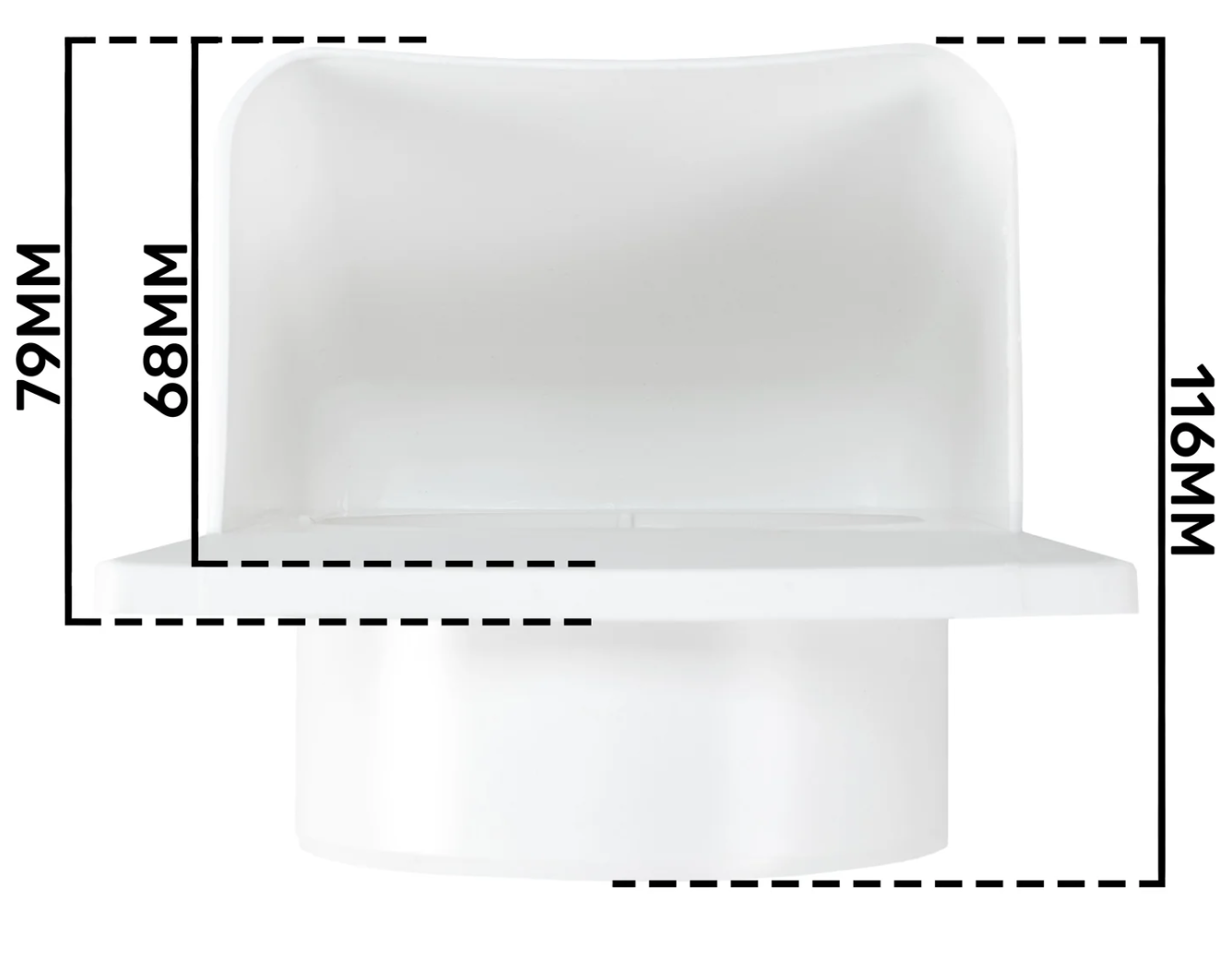 A practical choice for upgrading tired or broken vents, or for new installations where a cleaner finish and basic backflow protection are needed. The white finish suits most exterior walls and internal service areas without drawing attention.