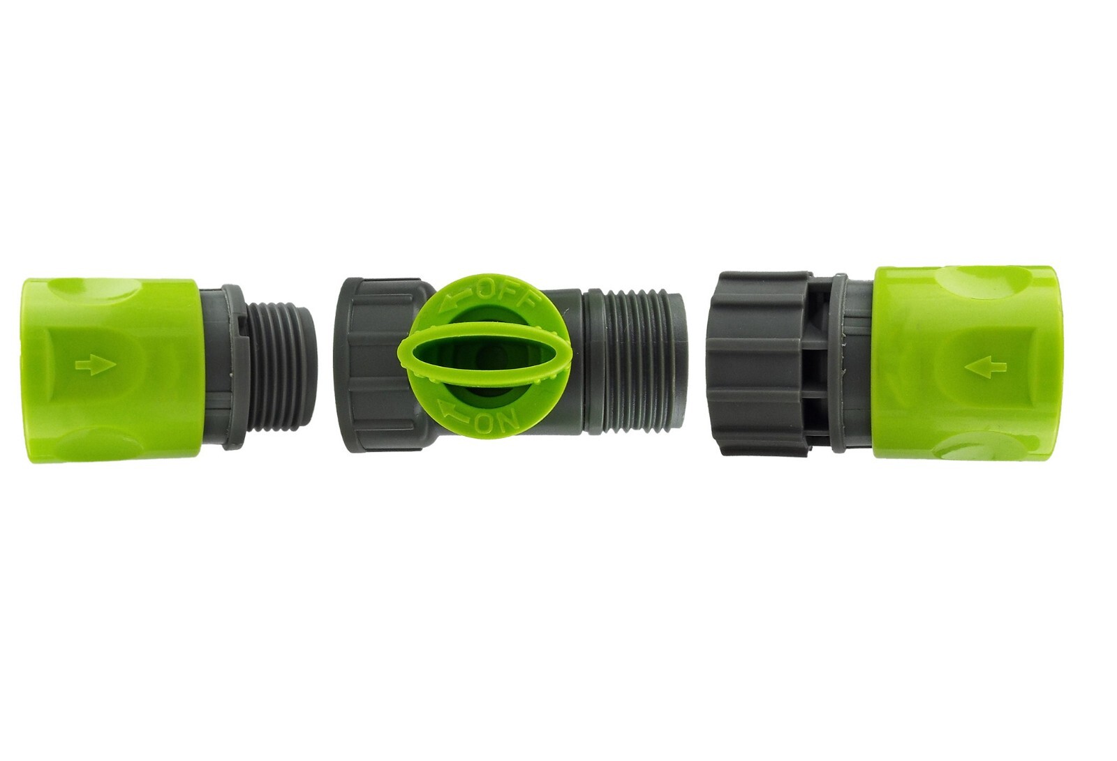 This female-to-female hose linking connector lets you join two lengths of garden hose and add convenient flow control at the join. It’s ideal for extending your hose reach and for quickly turning water on or off while swapping accessories, moving around the garden, or pausing watering.
