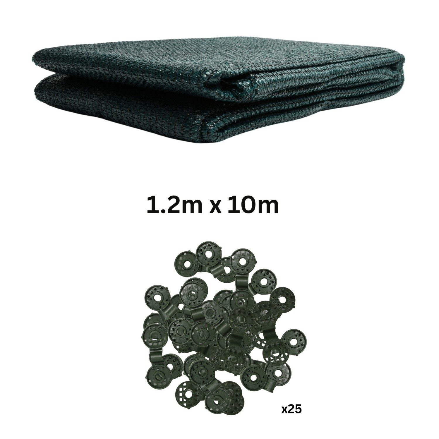 Lightweight shade netting that cuts harsh sunlight while keeping air flowing for healthier plants. Ideal for fences, balconies, greenhouses and veg beds, with optional fixing clips for a secure hold in windy conditions.