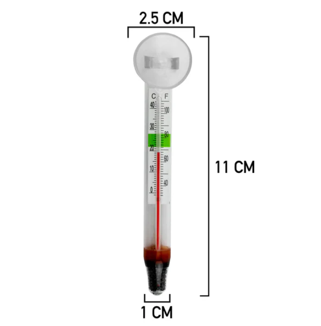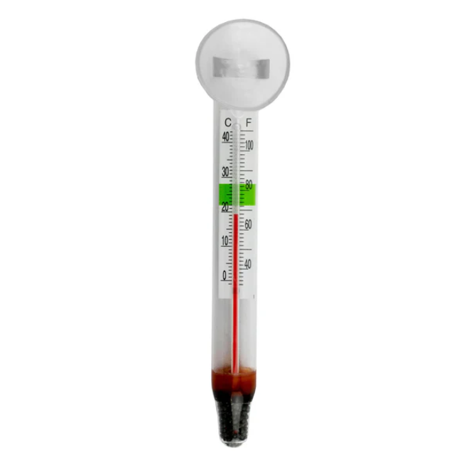 Keep a close eye on your aquarium temperature with this easy-read floating glass thermometer. Dual Celsius and Fahrenheit scales make checks quick and clear, while the green band helps you maintain a comfortable range for tropical fish.
