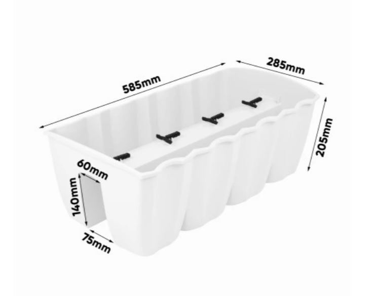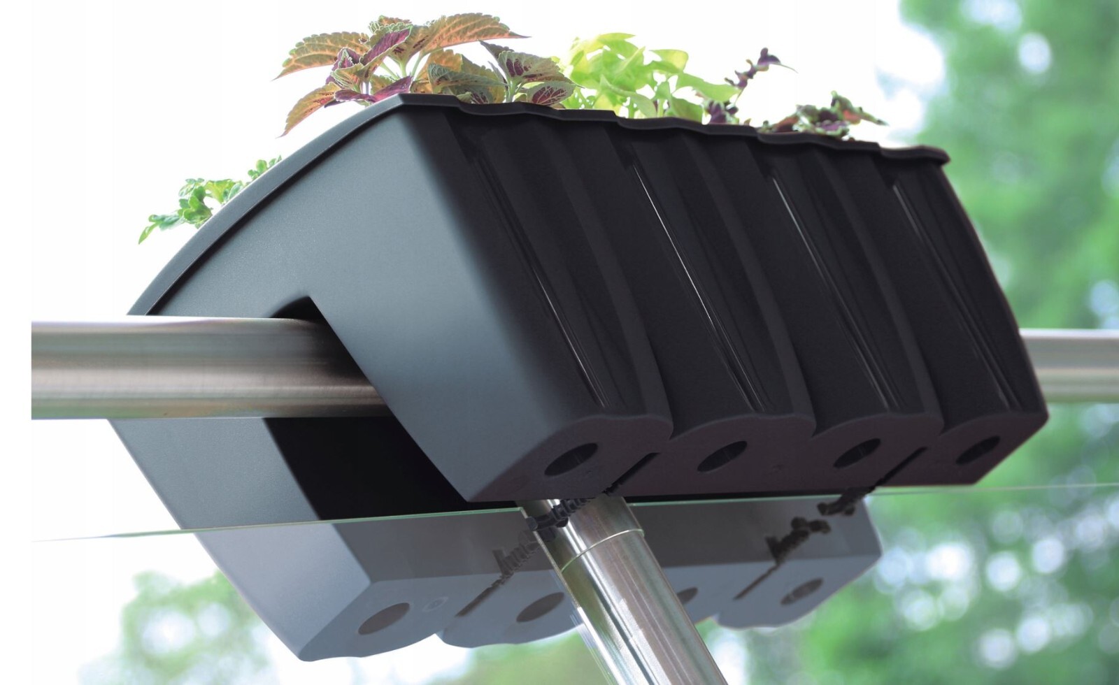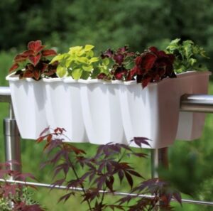 Made from UV-resistant polypropylene, it’s built for outdoor conditions and everyday garden use. The planter is supplied with interlocking clips so you can join multiple pots together to form a tidy row across your railing.