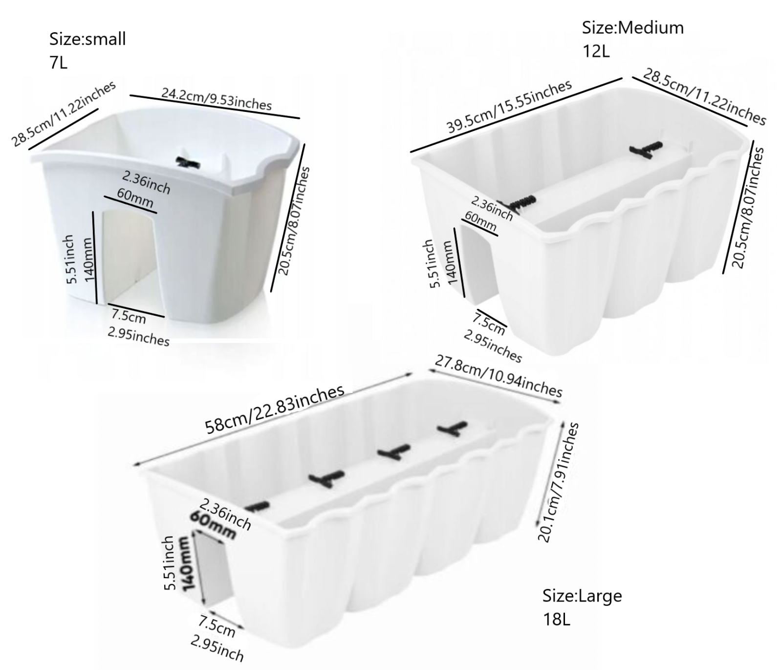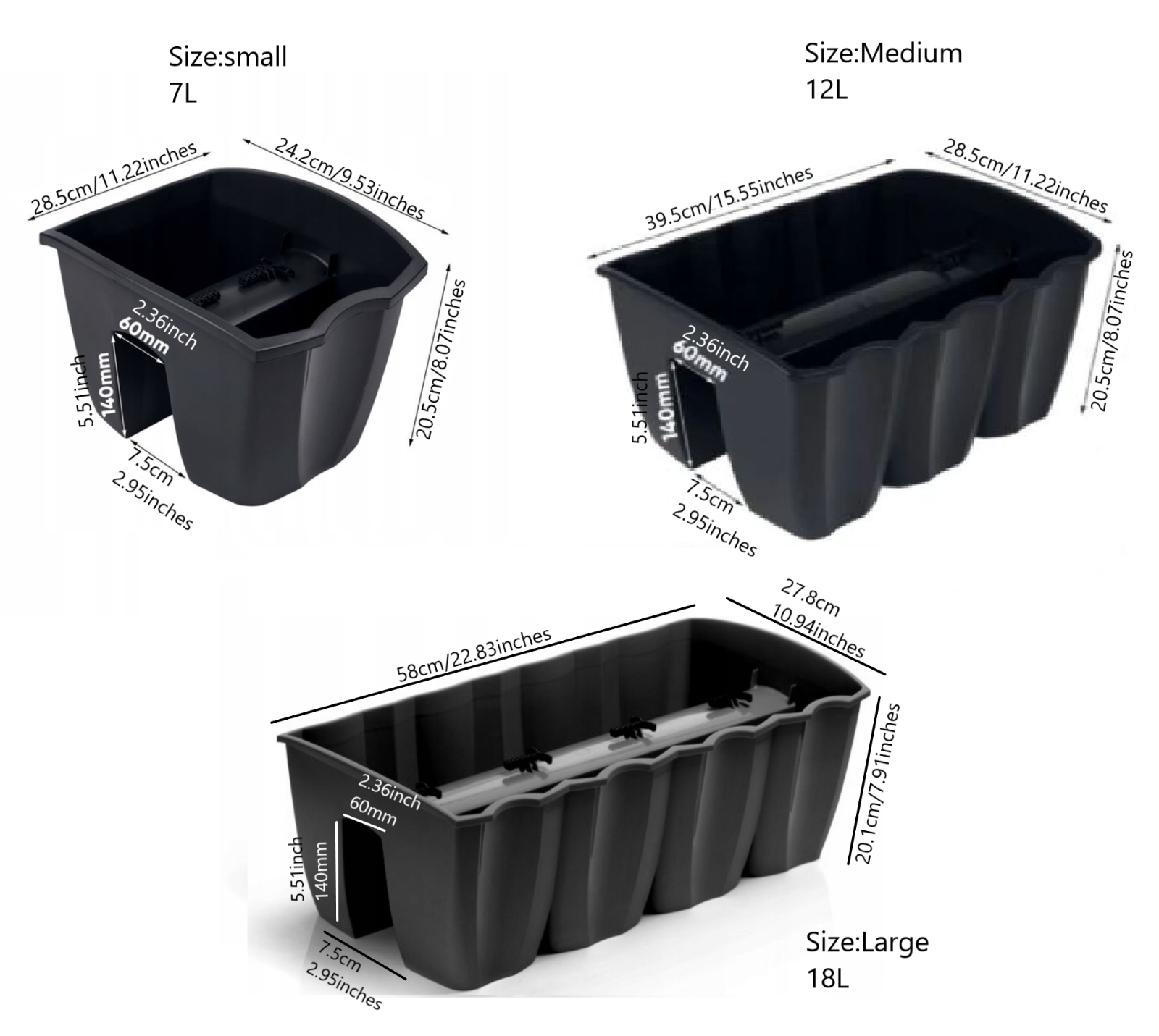 | Capacity | Small: 7L; Medium: 12L; Large: 18L |