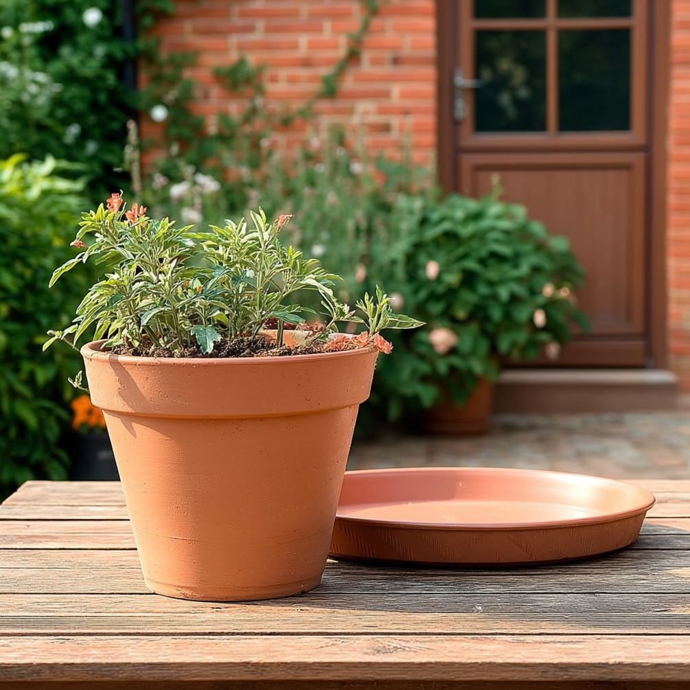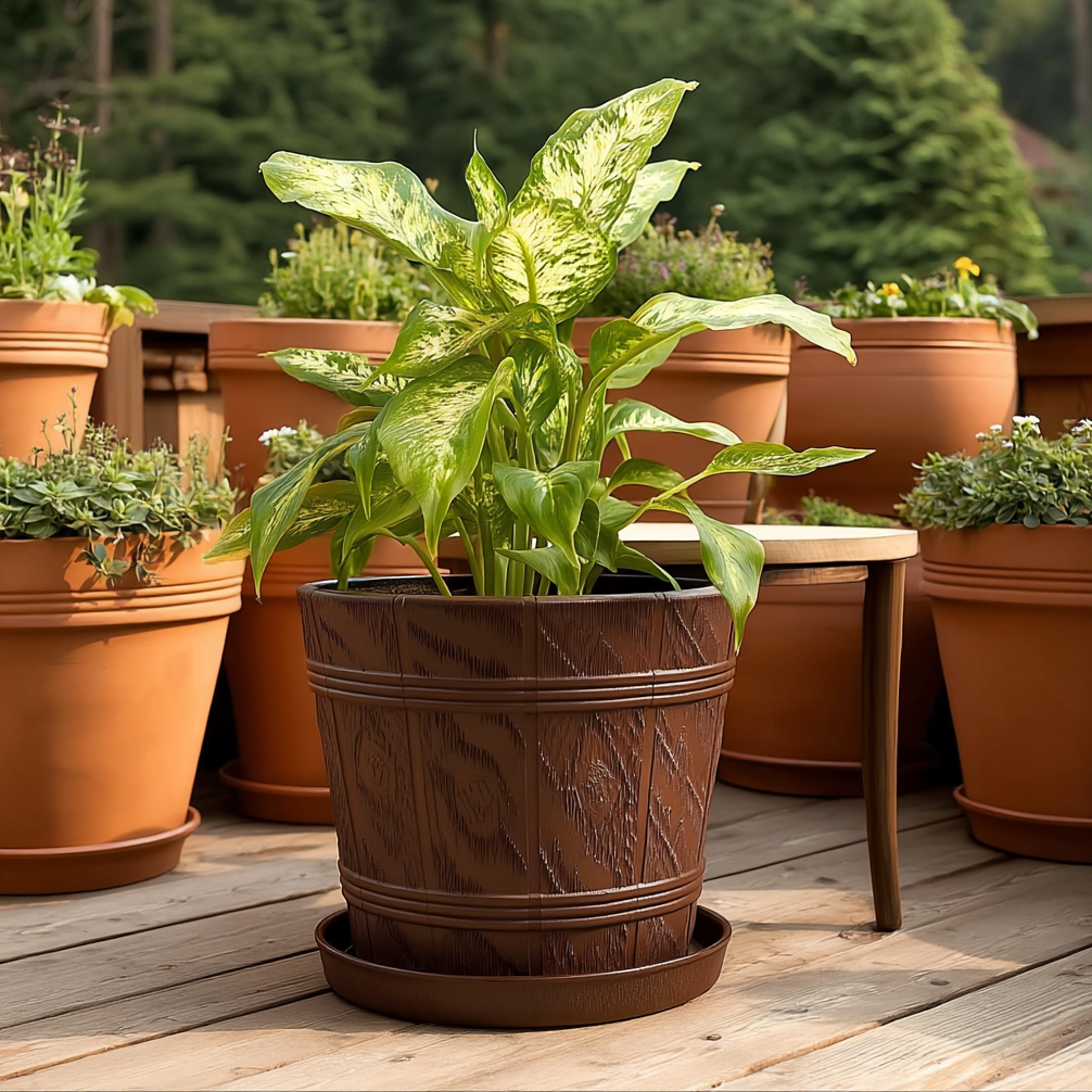 Made from durable, weather-resistant plastic, it combines everyday practicality with a realistic wood-effect texture and a smart matt finish. The saucer is lightweight for easy handling and simple to clean after watering or repotting.