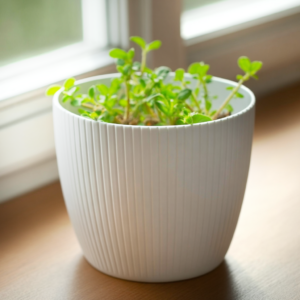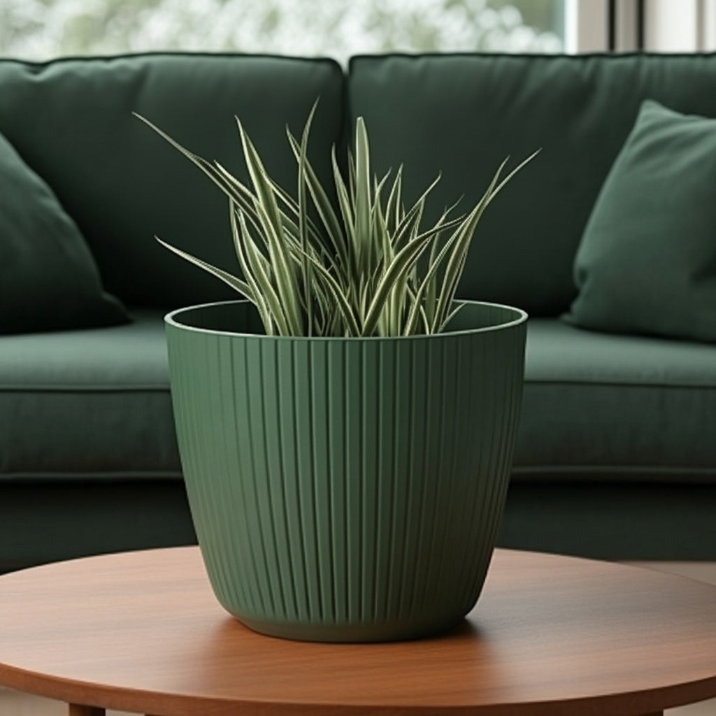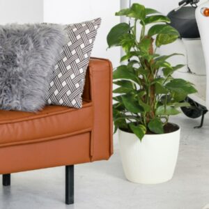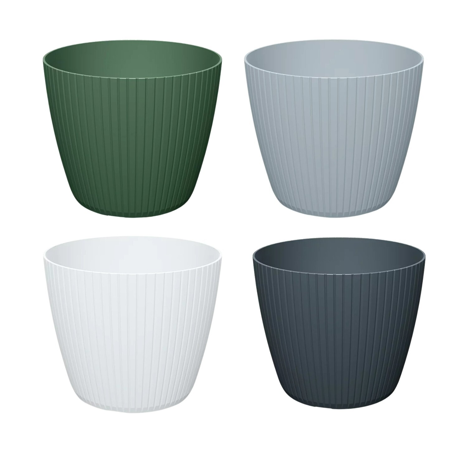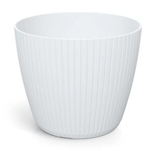 A stylish round plant pot cover with a modern vertical groove finish, ideal for refreshing indoor spaces or sheltered outdoor areas. Lightweight yet durable and easy to wipe clean, it helps keep your décor looking neat while showcasing your plants.